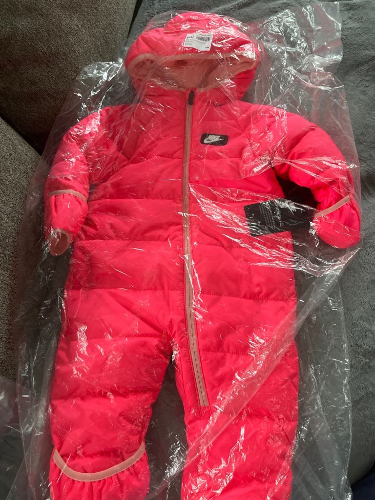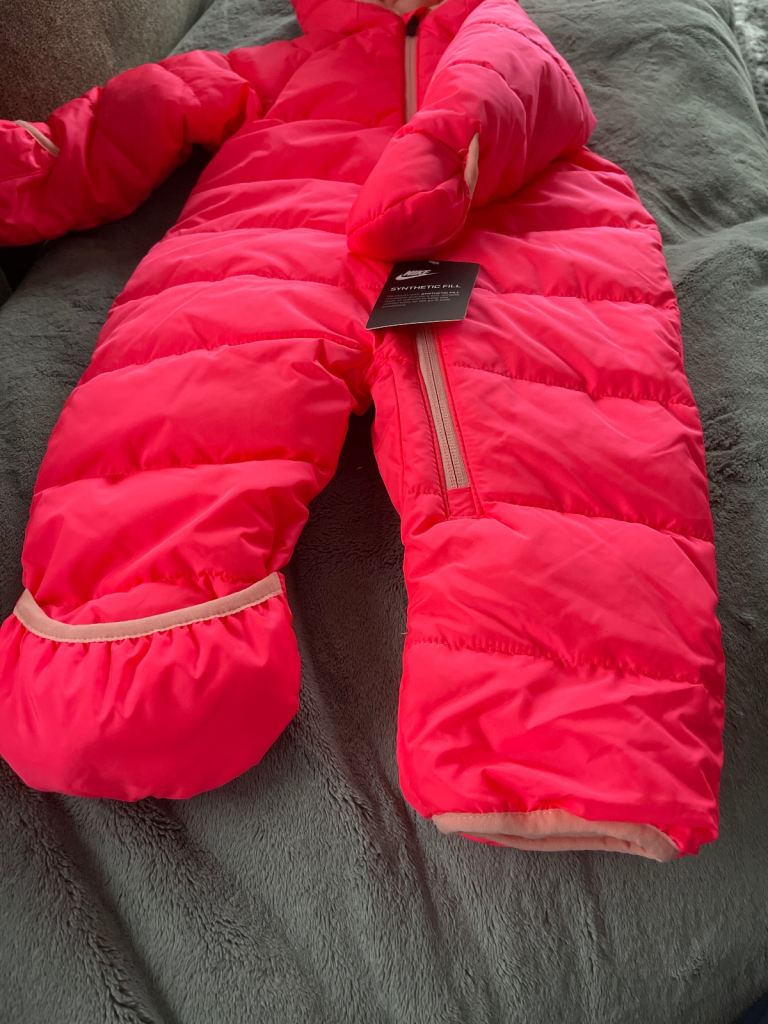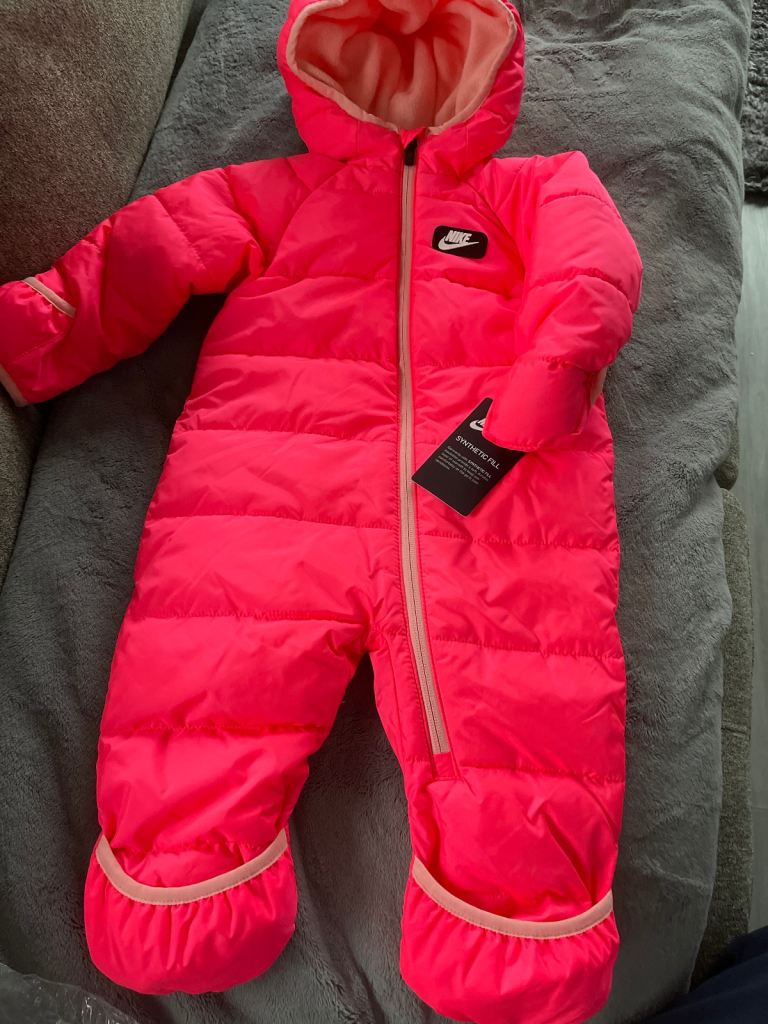 Nike all in one snow suit .. size 12 months .. brand new with tags.. synthetic fill.. fleece on inside.. has hand & feet cover .. or can wear with no hand & feet cover .. 🎁🎄 ideal Xmas gift!