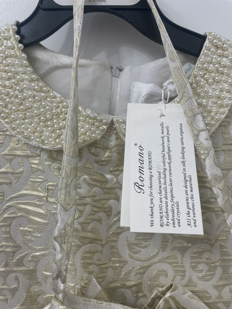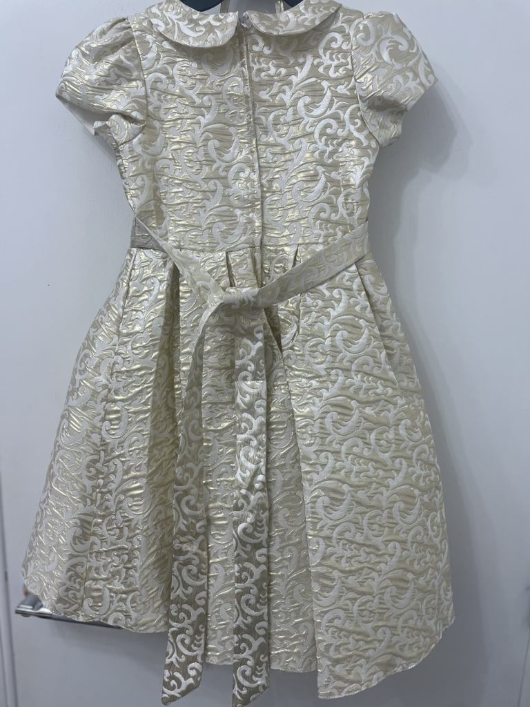 Romano Gold Jacquard party Dress with bag for girls ( size 6 years)