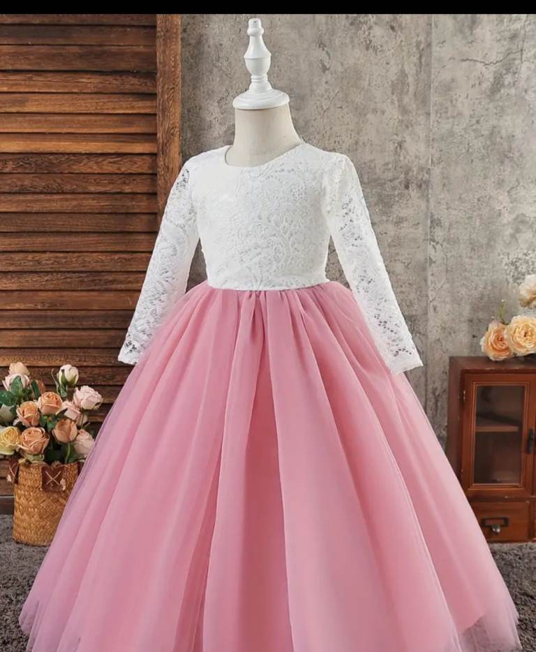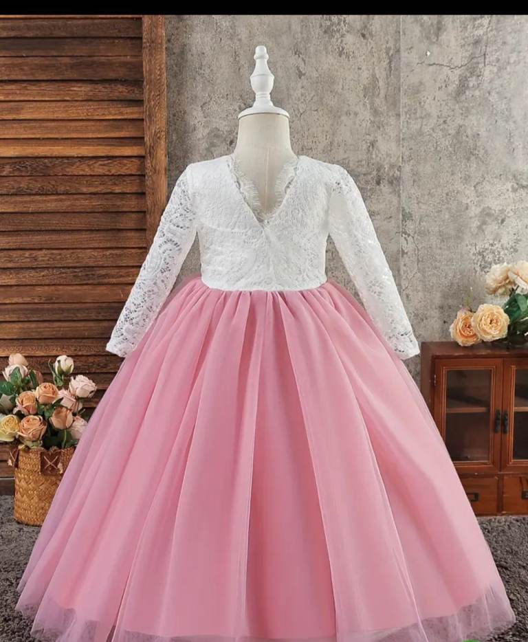 Elegant dress with lace top and pink skirt