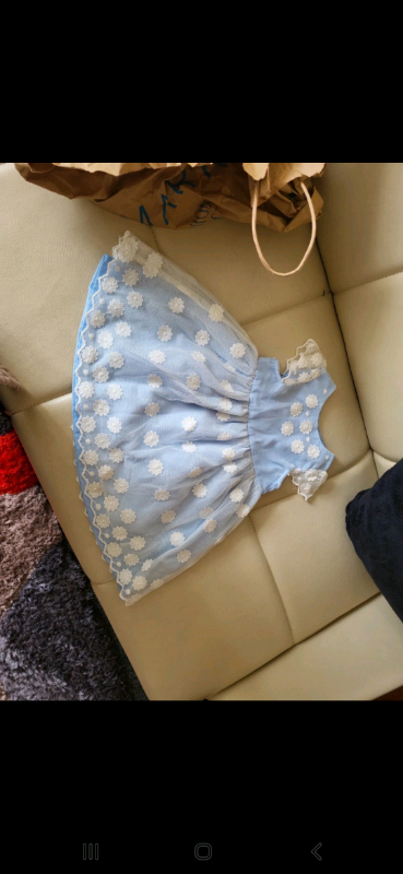 M&S Blue Mix Embossed Fabric Dress Size Age 11-12 Years New with Tags.