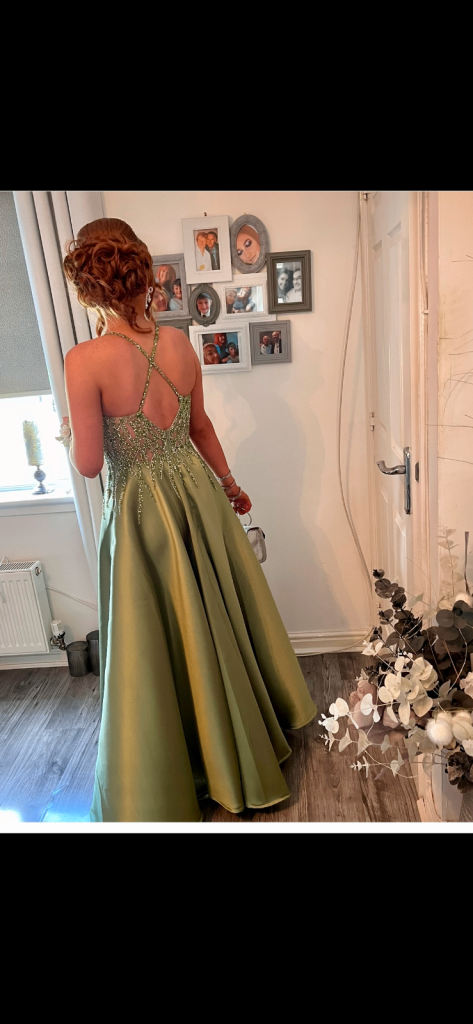 Stunning satin Jade green with pockets prom dresssize uk 10 bought from Halo in Glasgow cost £570