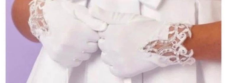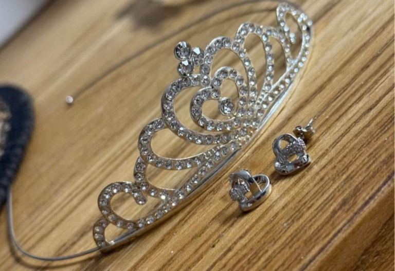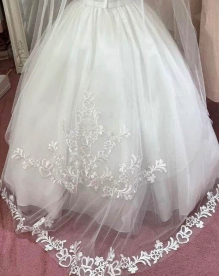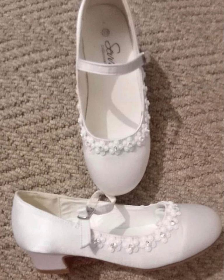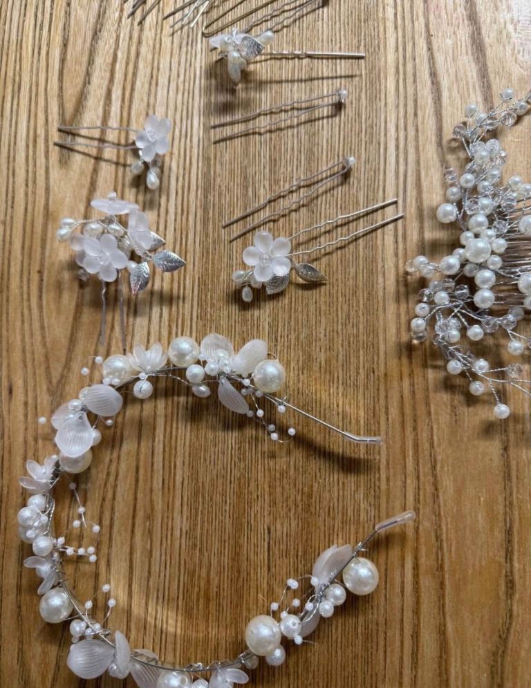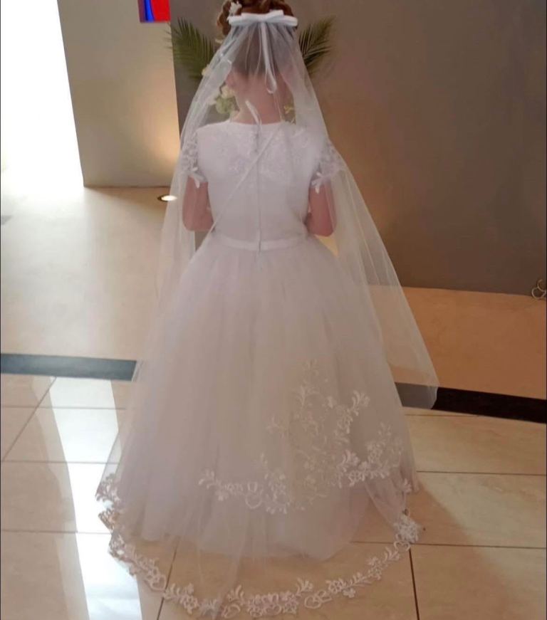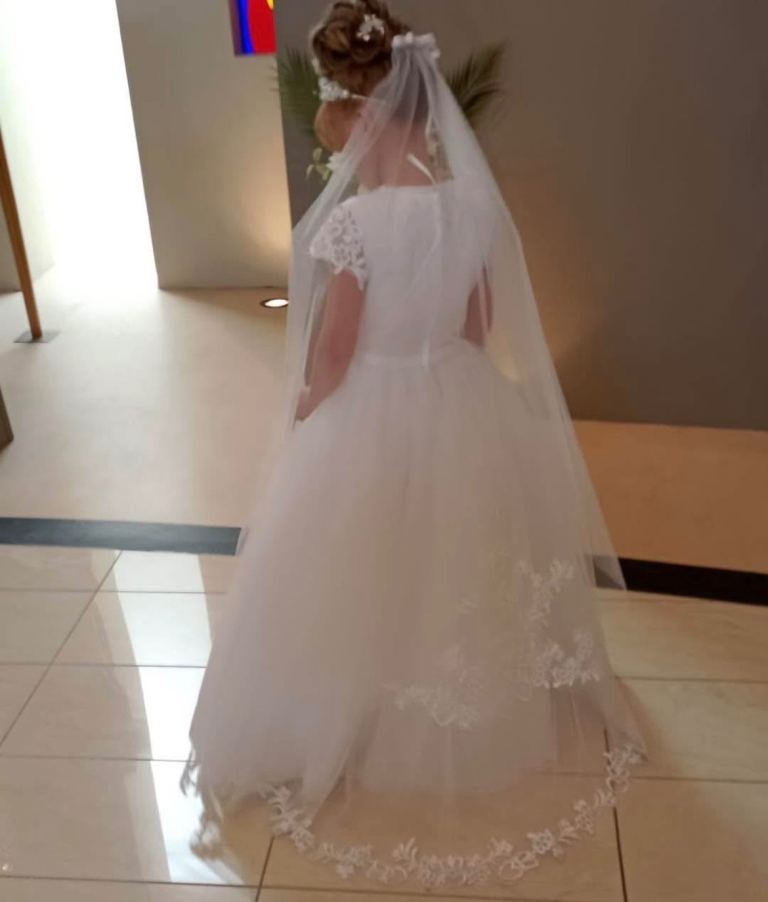 Comes with long Celtic veil, Celtic gloves, Celtic bag, several hair accessories, shoes size 1 , dress has also been dry cleaned!! No offers! Welcome to view