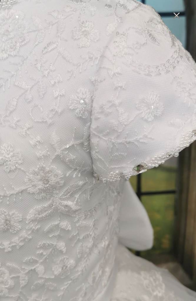 Bought for £450 from designer kidz prescot. Sweetie pie collection, absolutely gorgeous embroidery on top half and mixed layer tulle on bottom, very princessey. Back is half zip up hidden with buttons.