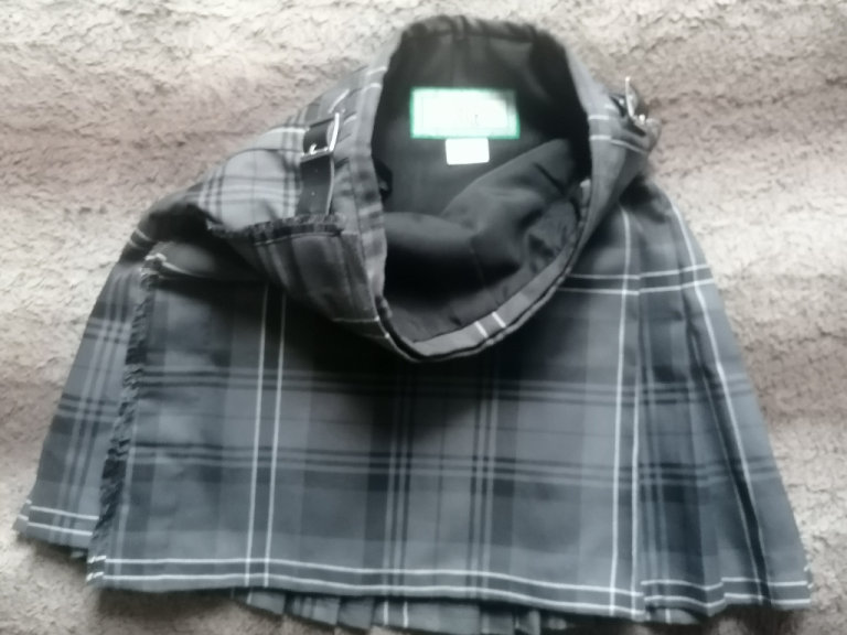 The kilt AGE 7-8. Waist - 30 Inch Lenght 19-inch. Width 26 - inch..