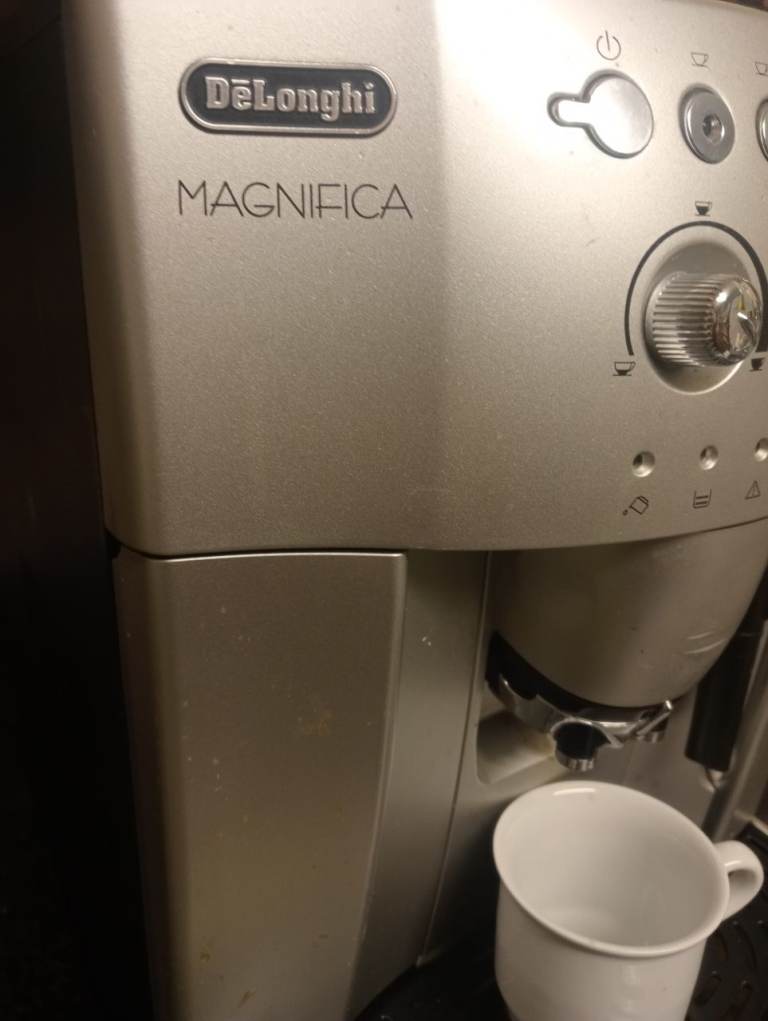 DeLonghi magnifica bean to cup machine in perfect working condition a few light scratches on the water tank front but easily sprayed over, usual selection of bits like strength of coffee one or two cup setting and the milk frothy bit,comes with a kilo of beans to get you started on, buyer collects please or can be delivered locally at fuel costs. £85.00 ovno