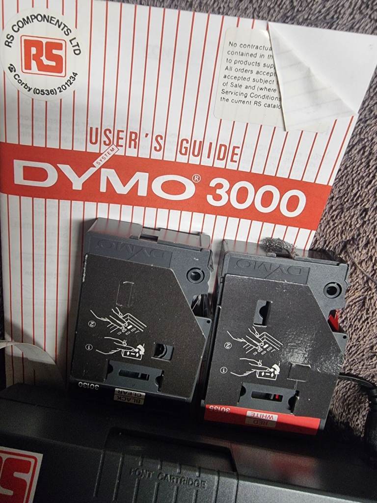 Dymo label printer badged rs components tested as seen in photo with power pack and 2 spare tapes