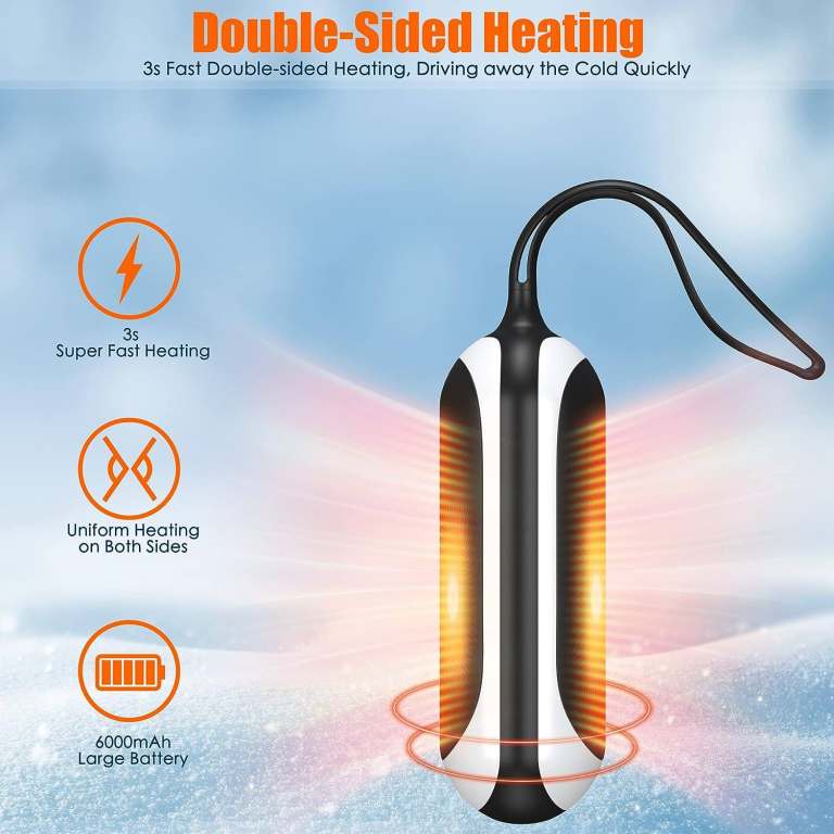 UNIQUE DESIGN: The Hand Warmer is made of high-tech aviation-grade materials, ABS flame-retardant materials and PC. The hand feels smooth and comfortable, and the curved body is stylish and lightweight. With silicone lanyard, suitable for outdoor carrying in Winter. Suitable for Outdoor Sports, Fishing, Hiking, Camping, Skiing, Traveling, and Walking the Dog in cold weather.