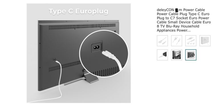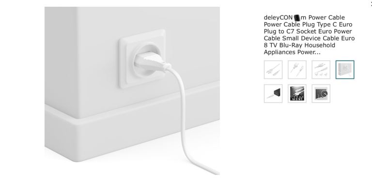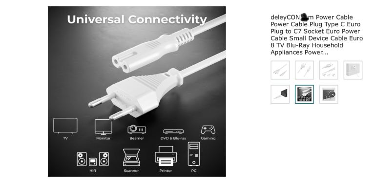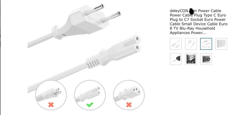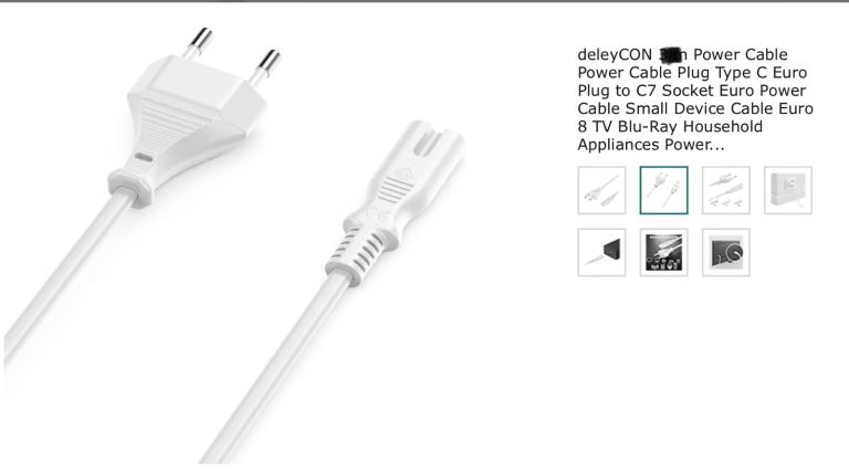 1.5m Long Euro EU European Plug Figure of 8 C7 2 Pin AC Mains Power Cable Lead.