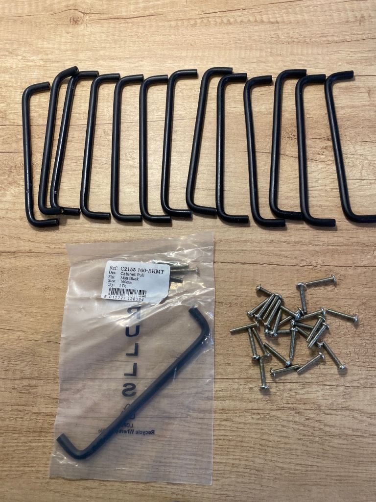 14 Matt black cabinet handles to fit kitchen cabinets, drawers, wardrobes etc.