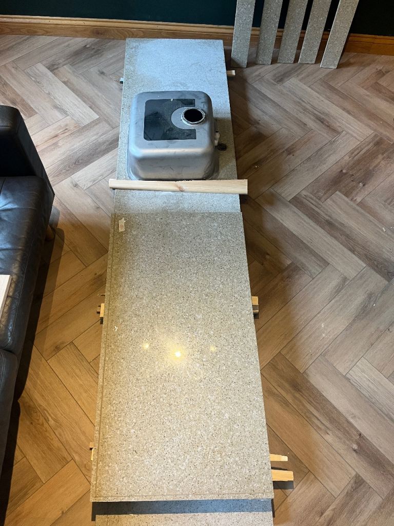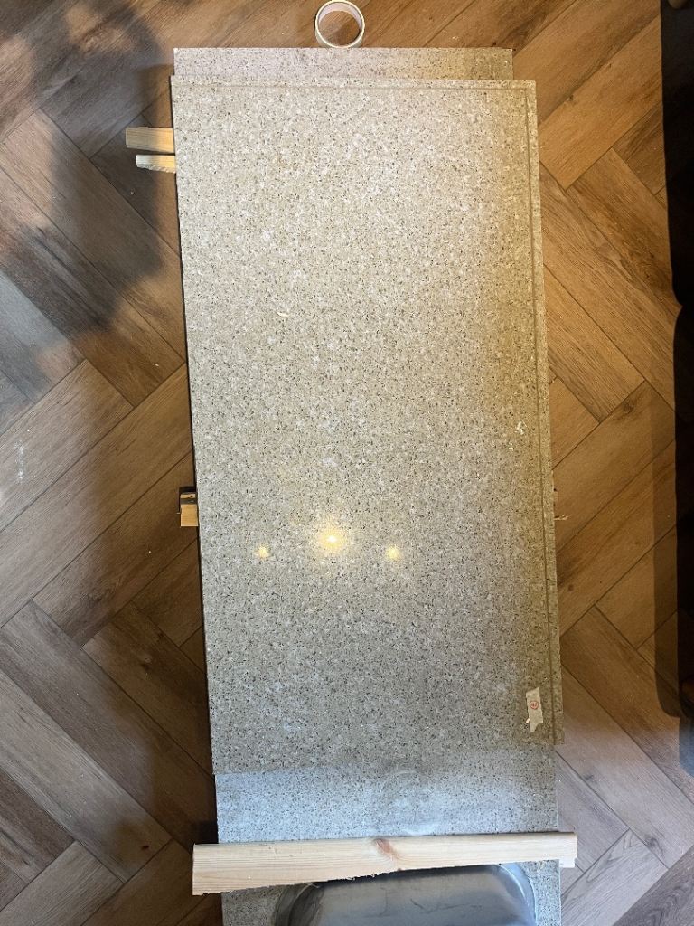 Quartz kitchen worktops, selling due to new kitchen being fitted. Sizes as listed. Beige colour with fleck.