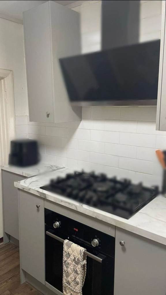 Some of the cupboard doors have residue on them from the original protective stickers but can be cleaned.