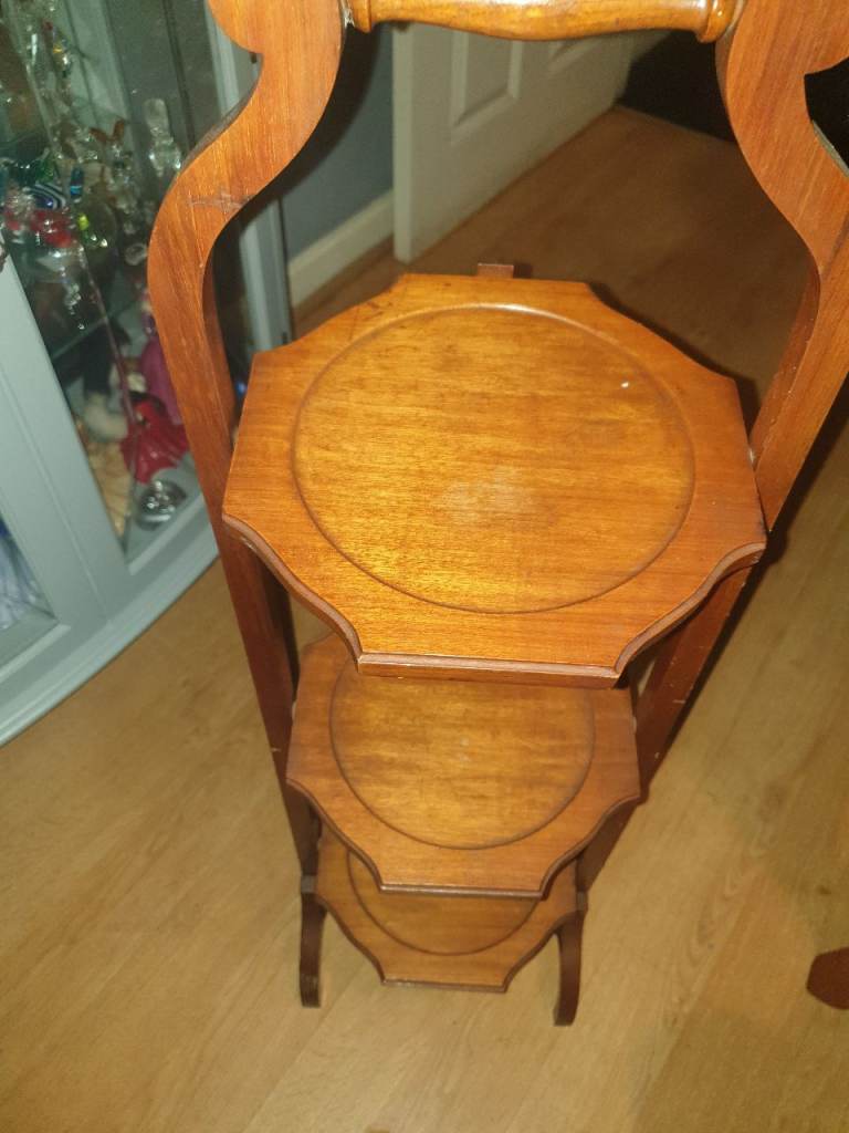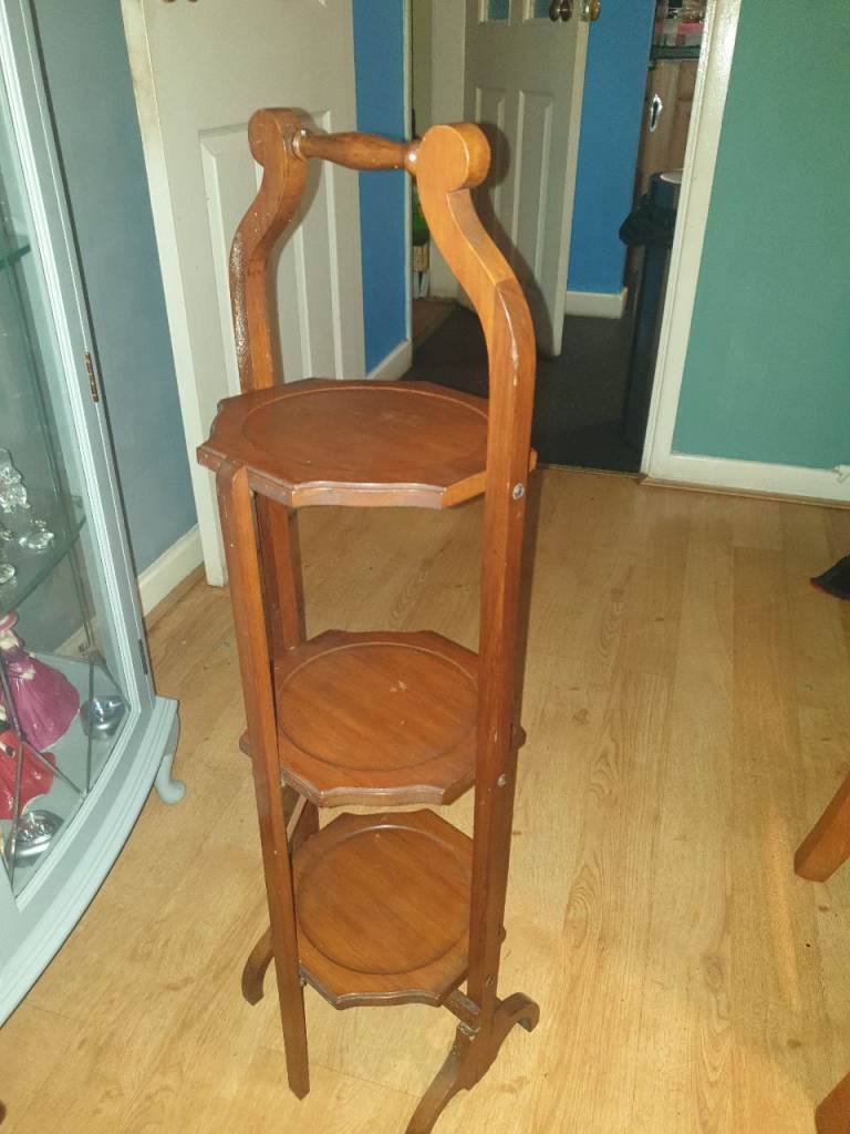 3 tier wooden foldaway cake stand in good condition. Could also be used as plant stand etc