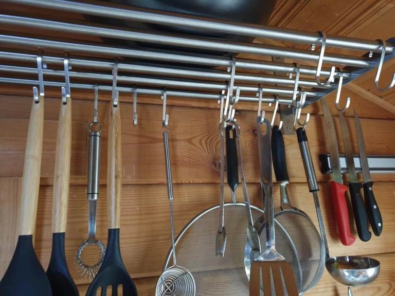 Plus you can hang cups, pans, spoons by using S shape hooks. You need to buy those separately. I am not selling them.