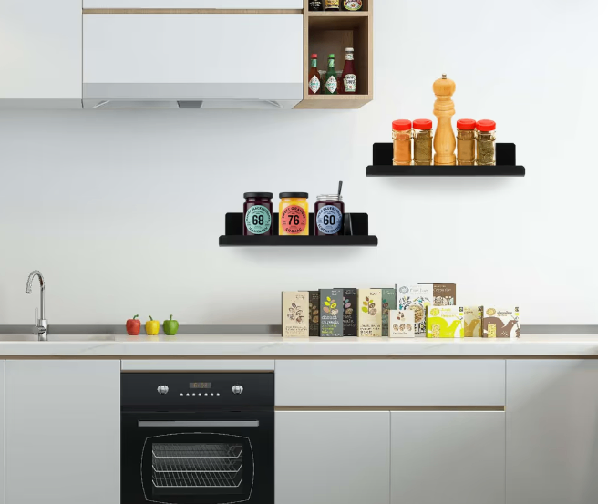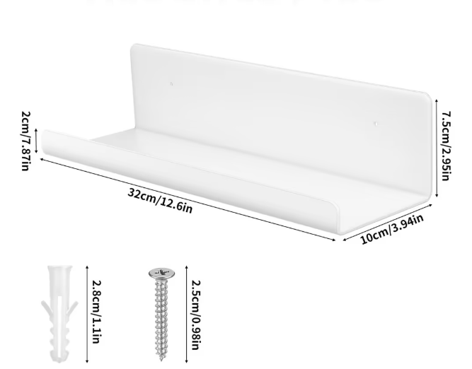 These are 32cm wide and 10cm deep, providing plenty of space for storage. They feature a modern "L" shape with a front lip to keep your items secure.