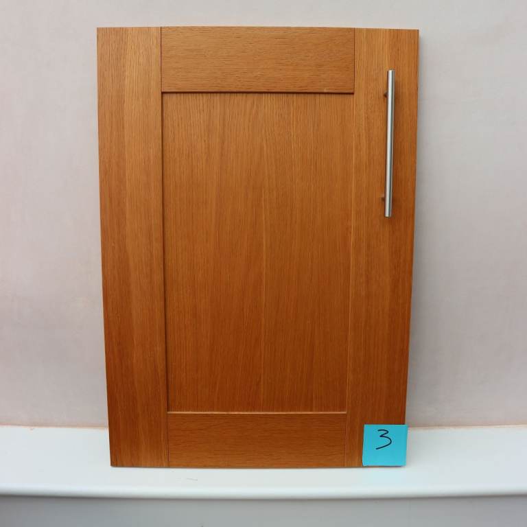 8 Solid Oak Shaker Kitchen Doors & Brushed Stainless Steel Handles- ideal for Renovation / Upcycling