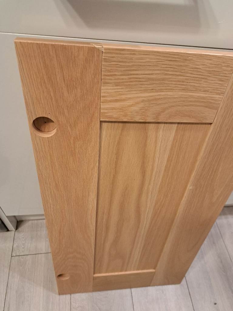 Brand new kitchen doors...with hinge holes in...oak coloured id say sizes are 400 wide by 715mm height...7.00 a door ive got about 20.. plus some bigger ones 12.00 each.im sure if you went on you tube hacks you could make kitchens..bedrooms...under stairs cabinets or loft space cupboards