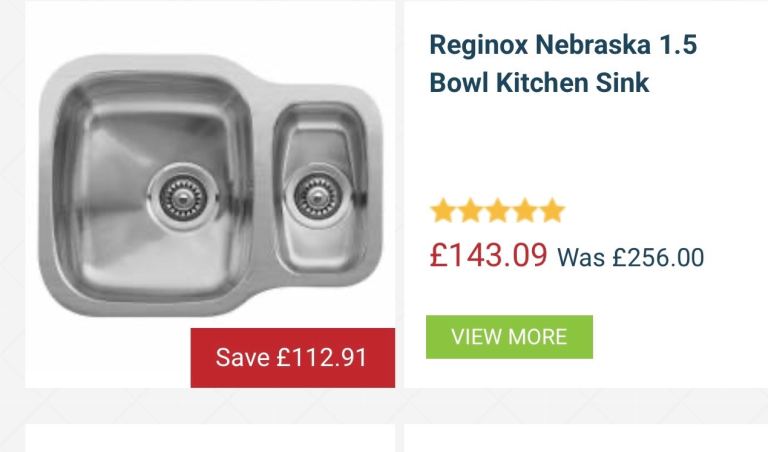 Brand new Reginox 1.5 bowls kitchen sink & drainer