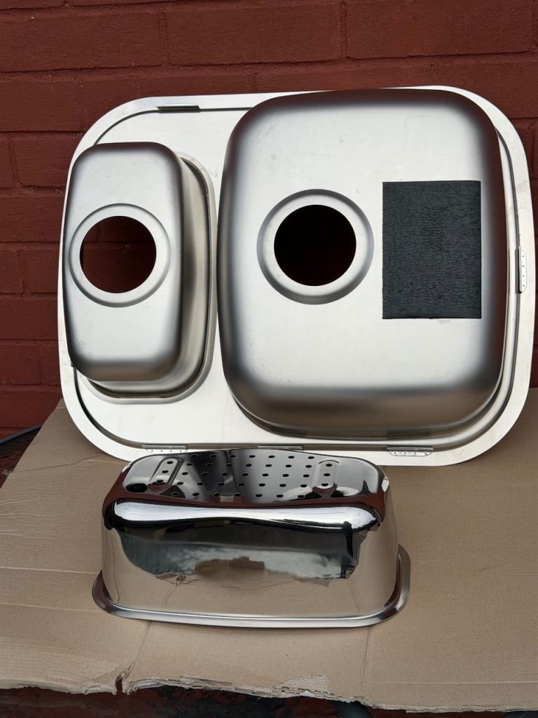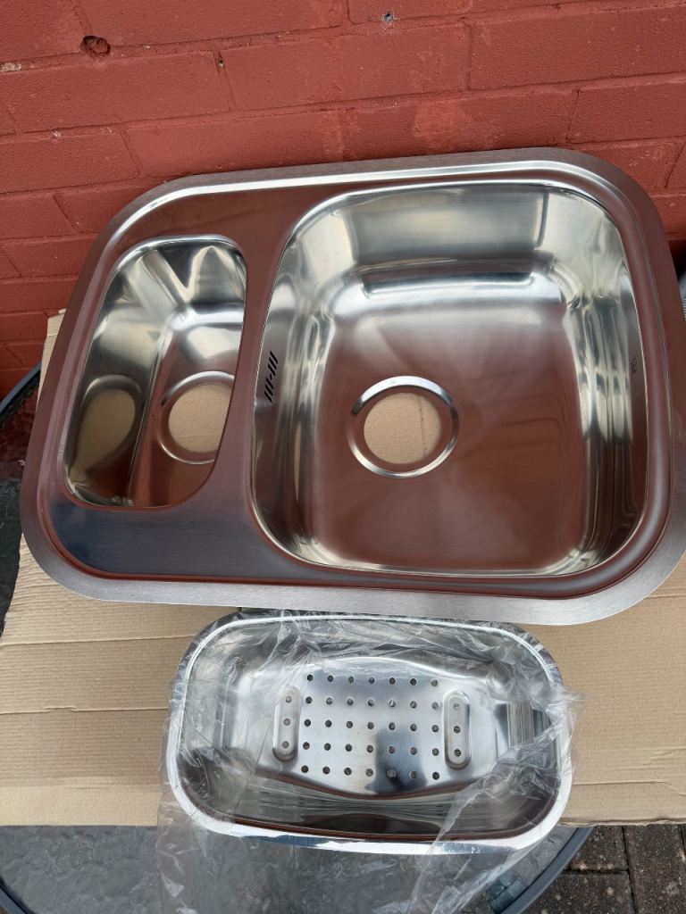 Failed kitchen project, brand new stainless steel 1.5bowls kitchen sink and drainer . No box or fixtures.
