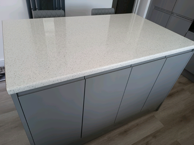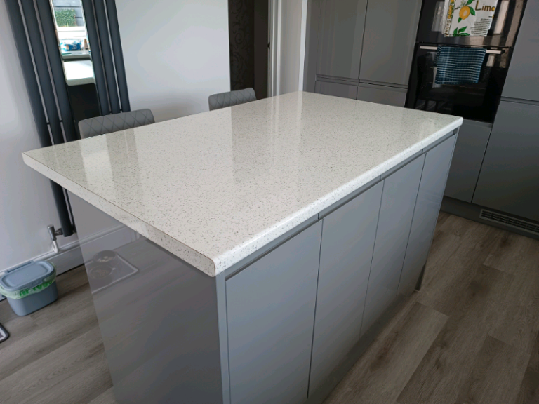 Brand new white gloss with silver sparkle island/ breakfast bar workto
