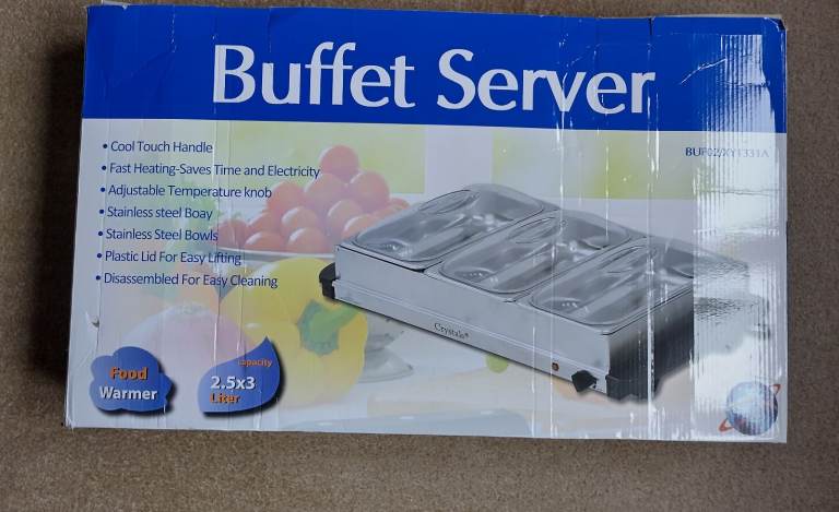 Buffet server , cool touch , adjustable temperature knob, stainless steel bowls ,2.5 X3 liter food warmer