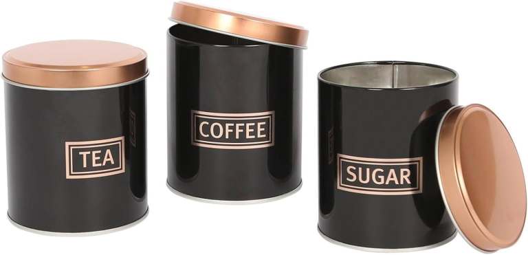 COOKIE TIN AND 3 CANISTERS FOR TEA COFFEE AND SUGAR