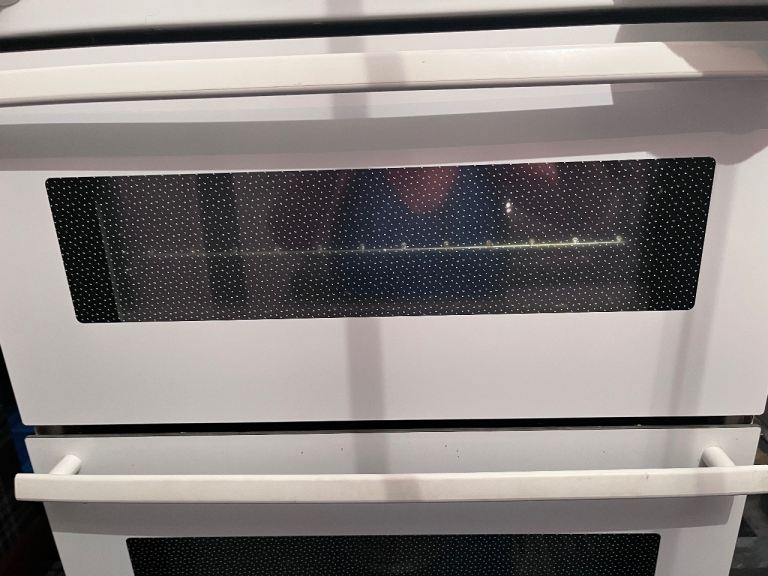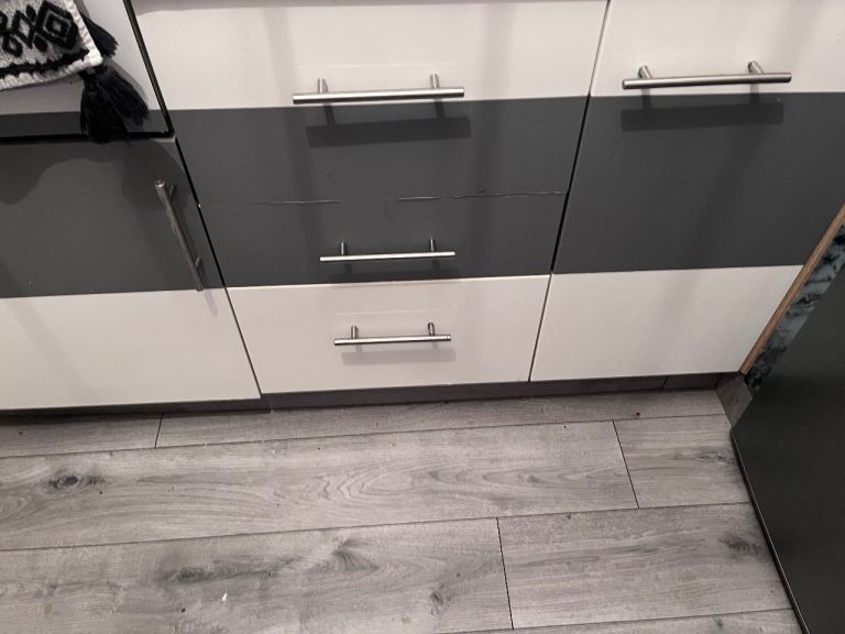 White and gray.This also includes the gas hub, the electric oven and electric grill .A really great bargain price for someone just starting out.