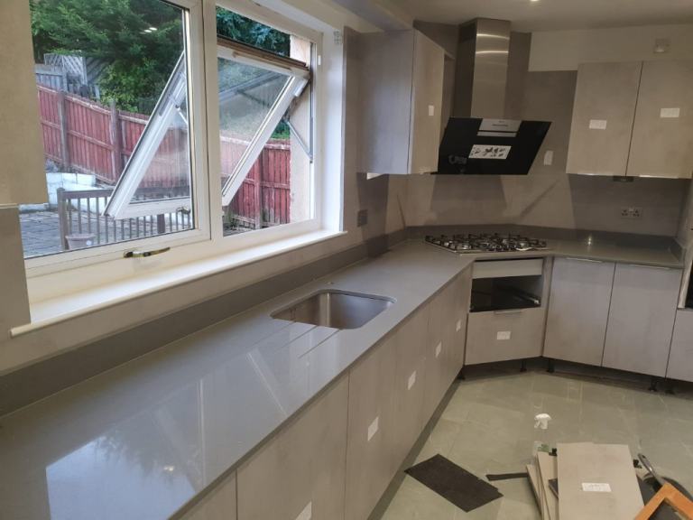 Upgrade your kitchen with our stunning grey, black, or white shimmer quartz worktops! This exclusive 6 linear metre supply-only deal includes inset sink and hob cutouts for just £1200. Perfect for a sleek and modern look.