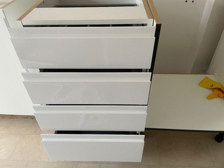 Howdens soft closing four drawer unit 500mm width. White high gloss in excellent condition. Buyer to collect - ready for collection.