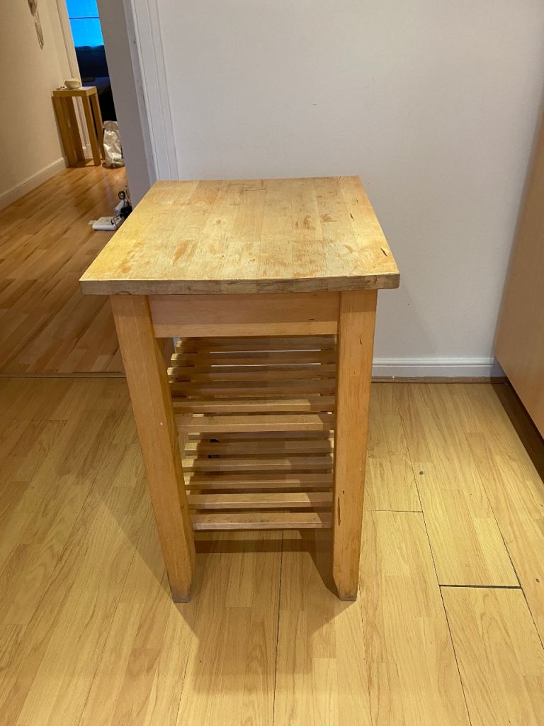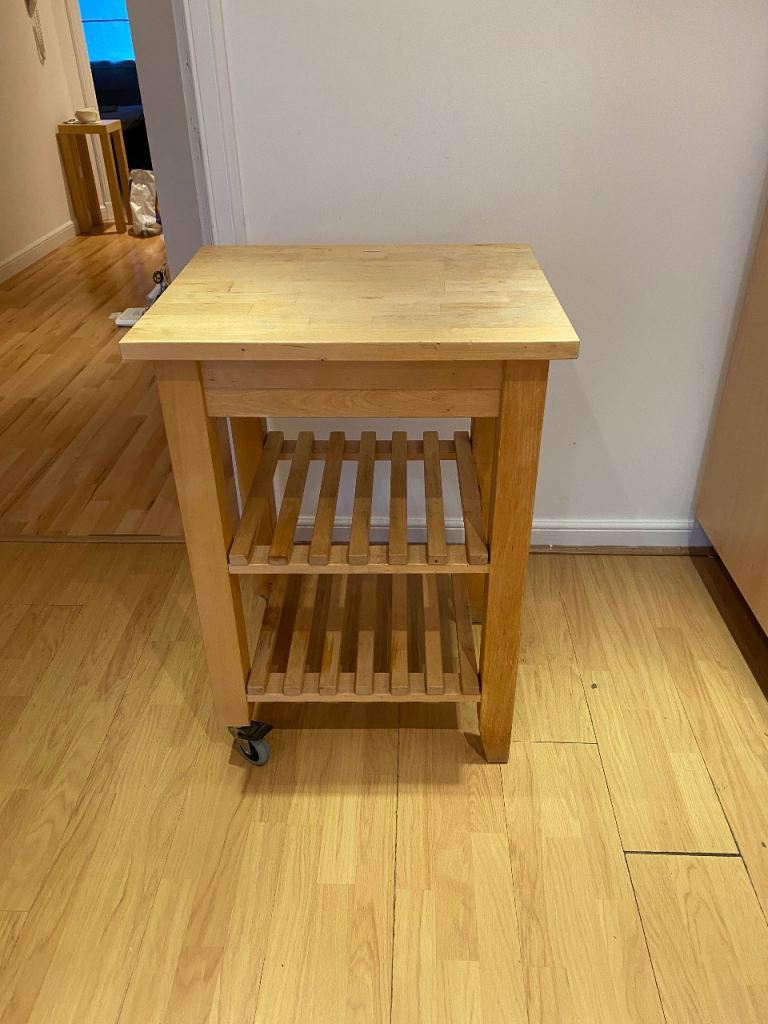 This is a solid wood moveable furniture addition for your kitchen. Creates extra worktop space and shelves for storage.