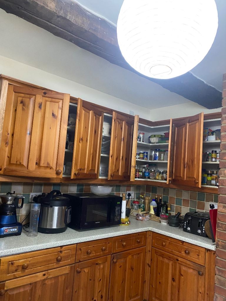 Kitchen cabinets 10 base cabinets and 7 wall cabinets in good condition . Available immediately till 28/03/26.