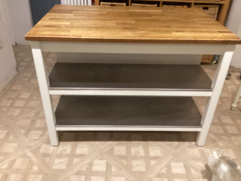 wood top, steel shelves.. 126 x 79 x 90 cms