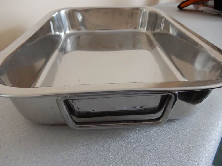 2 Stainless Roasting trays with side handles 29 cm l x 20 cm w x 5 cm d New £10 each