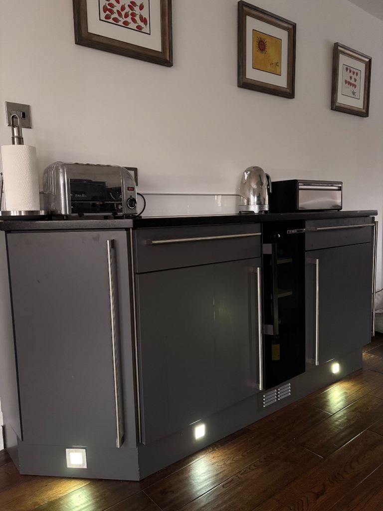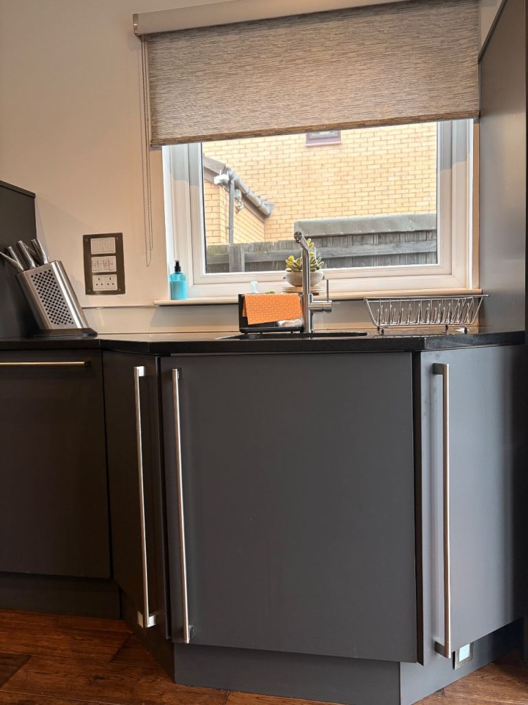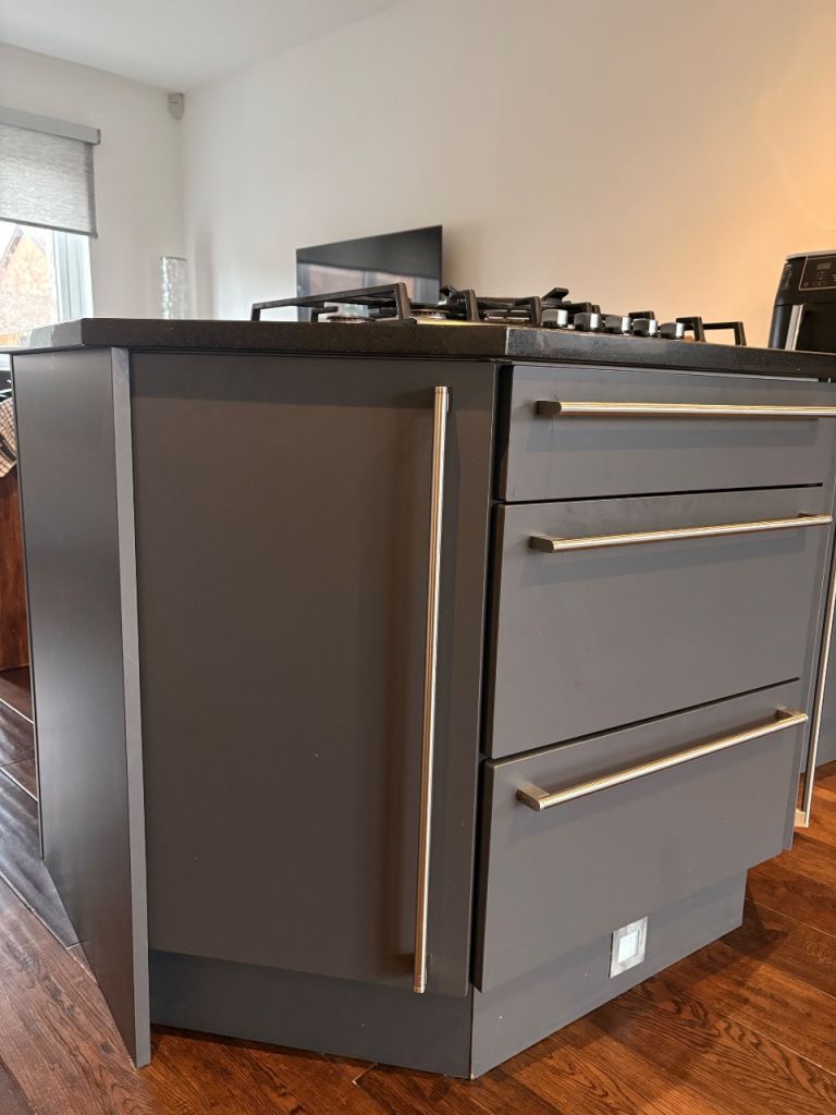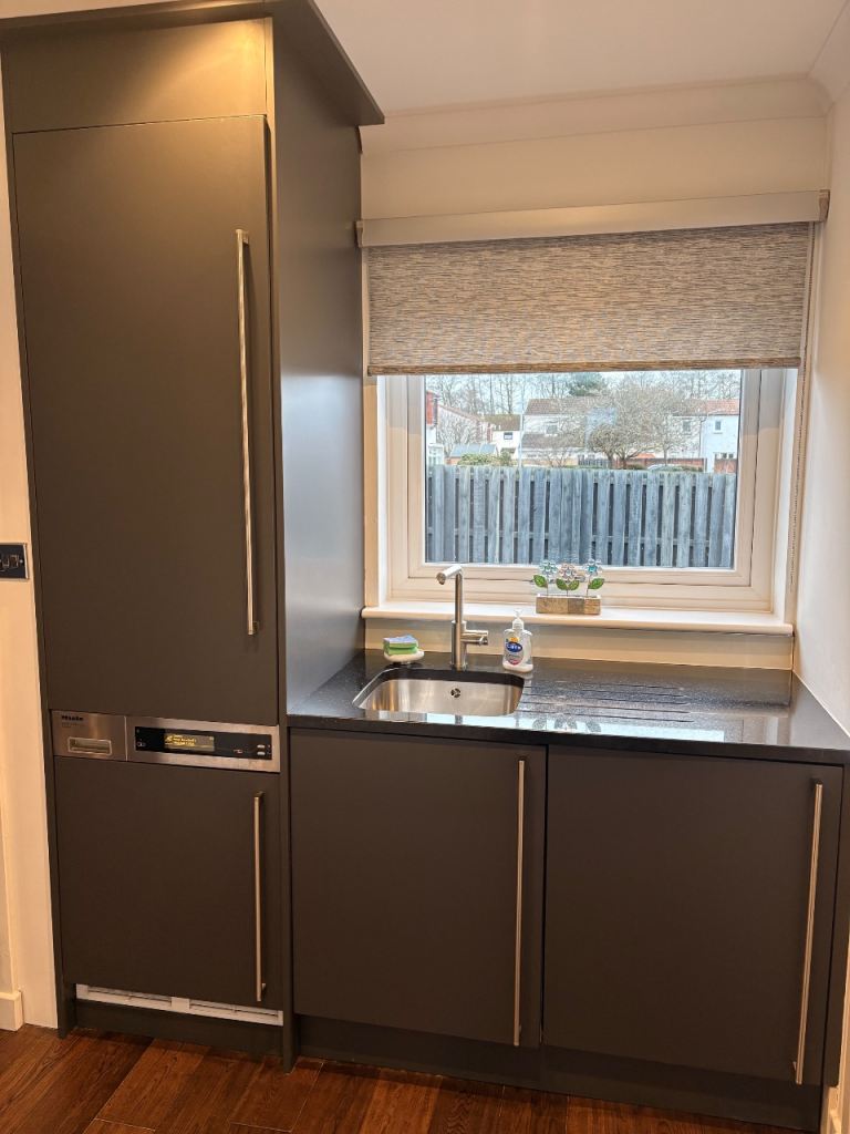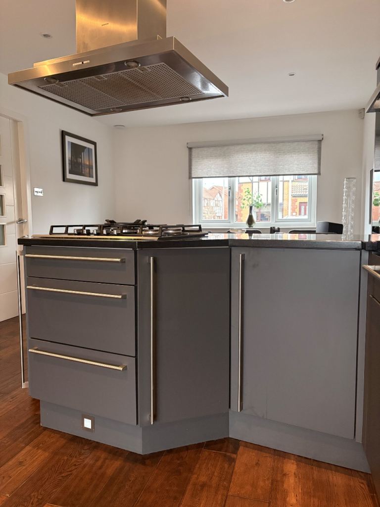 Kitchen units/handles, granite worktops, Siemens gas hob and hood and Miele tumble dryer. Lights and plinth included if wanted.