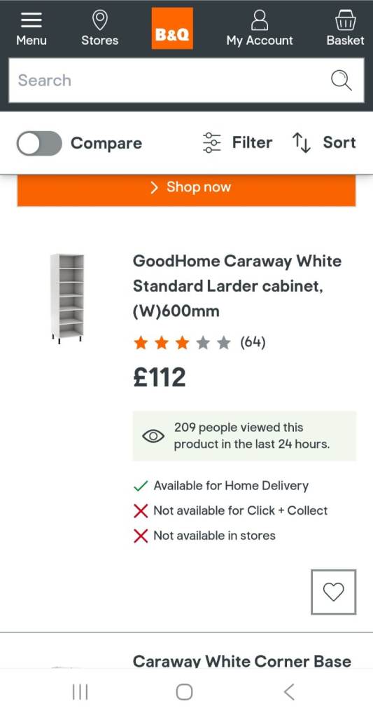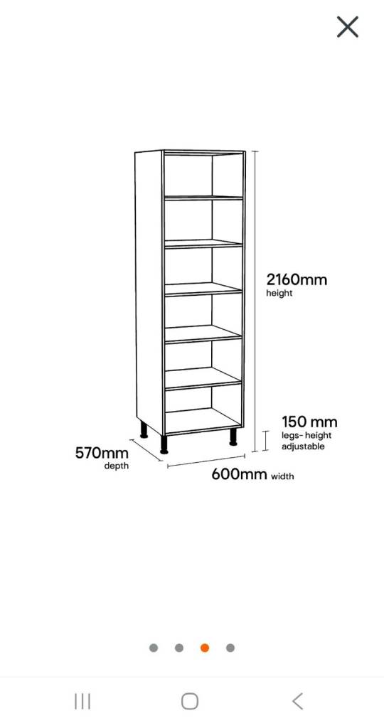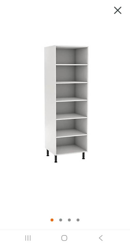 Larder unit from B&Q, 600mm wide with 2 slab white doors, no handles are fitted, no cut outs on cabinate, ideal storage for utility, garage, large shed or additional kitchen unit, they are £112 without doors.