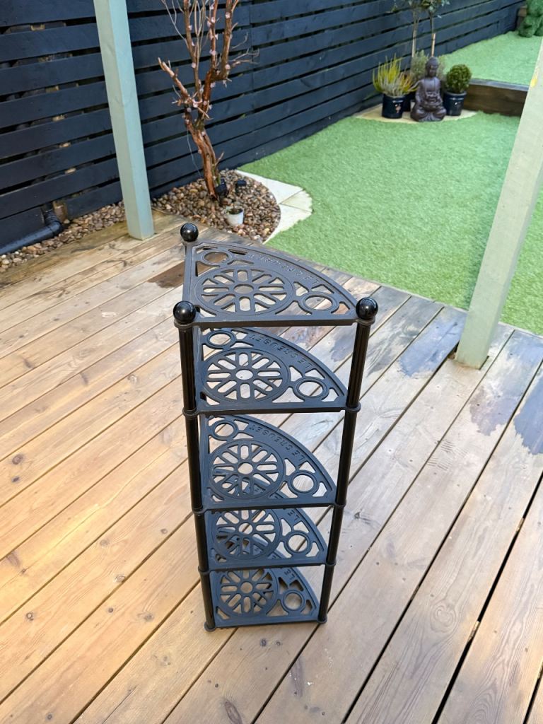 Matt black cast iron 5 tier pot stand. Used but in immaculate condition.