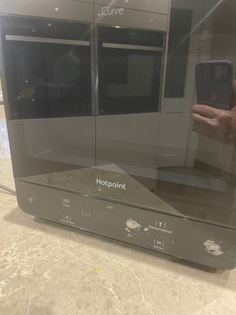 Beautiful different shape stunning quality microwave.Hotpoint curve. Not needed now as have one fitted into kitchen. Can deliver. ( No offers. Thanks. )