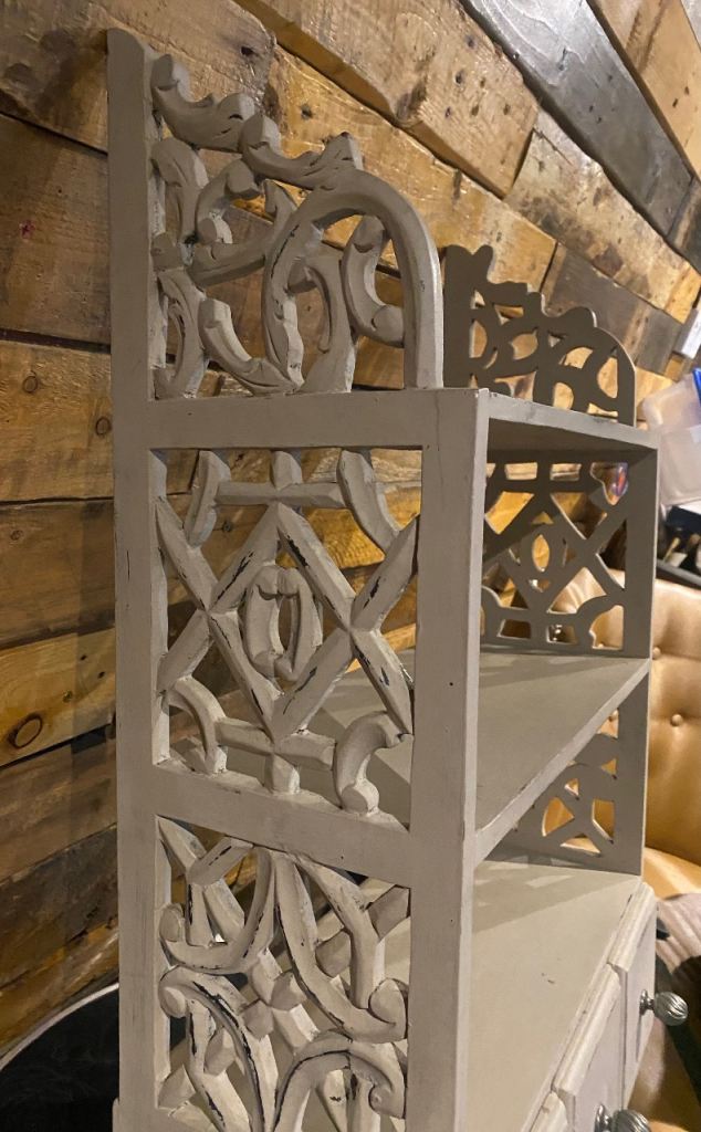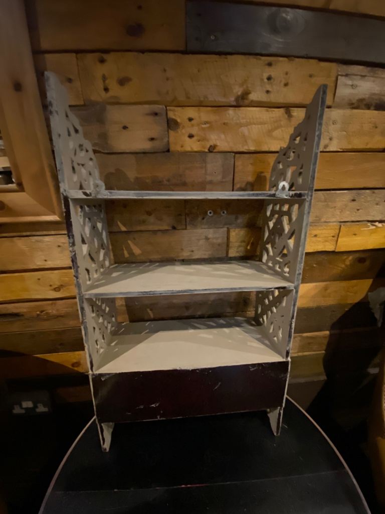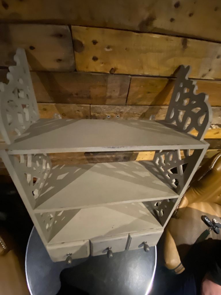 Old Wooden Wall Unit Upcycled Grey Wall-Mounted With 3 Shelves And 3 Drawers