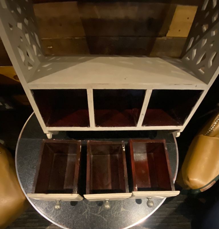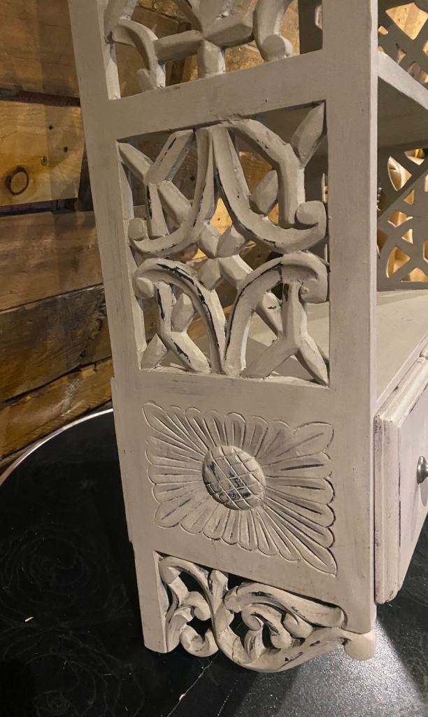 This Old Spice Rack is a stylish and practical upcycled storage unit, perfect for adding a touch of vintage to your home decor. With three shelves and three drawers, this wall-mounted rack offers plenty of storage space for your belongings. Made from wood, it measures 79cm in height, 45.5cm in length, and 19cm in width. Its multipurpose design makes it a versatile addition to any room, and its neutral grey colour complements a variety of interiors.