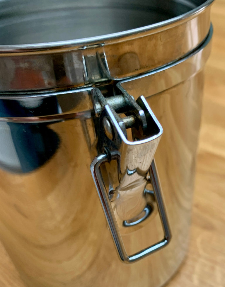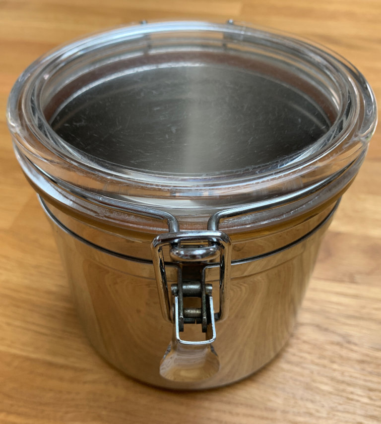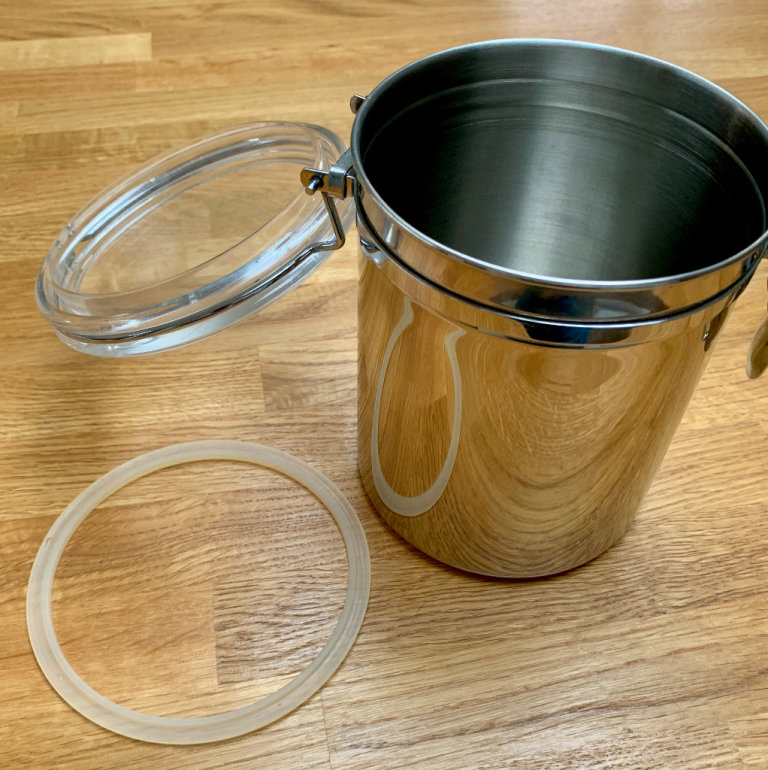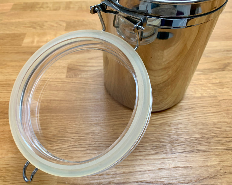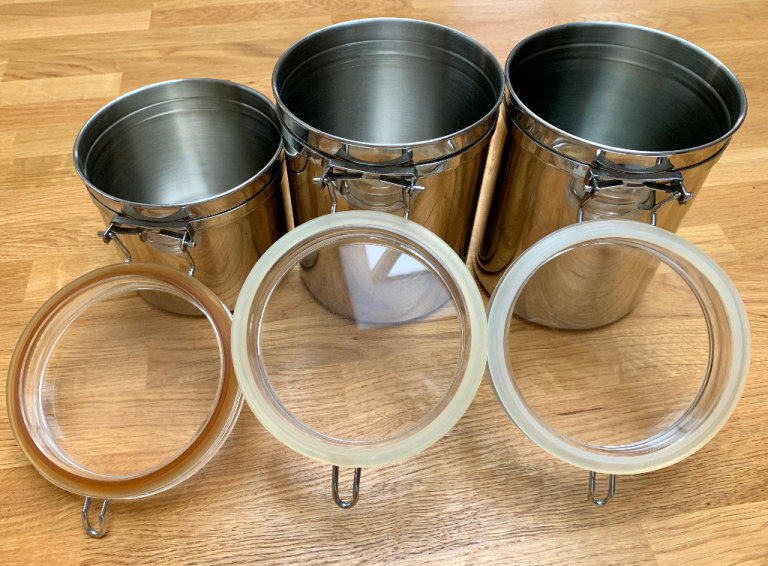 Lids are glass and have a removable rubber seal on the edge which makes the container air tight when the lid is locked down