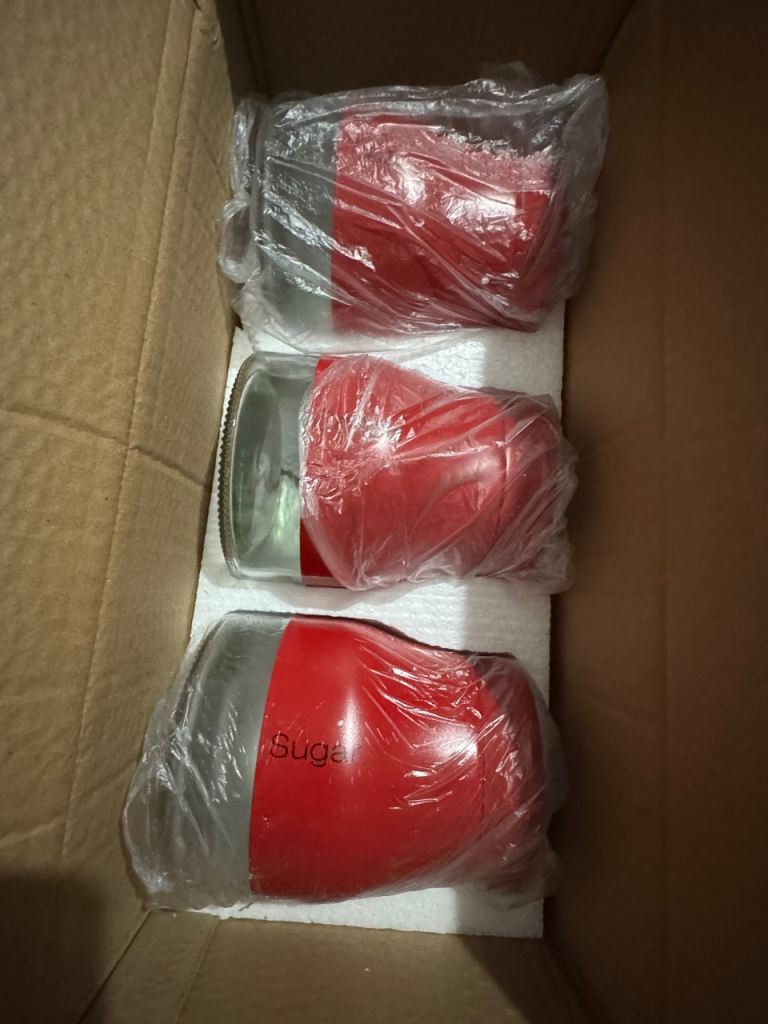 SET OF 3 KITCHEN STORAGE CANISTERS TEA COFFEE SUGAR JARS POTS CONTAINERS CADDY SET (BLACK)Red New