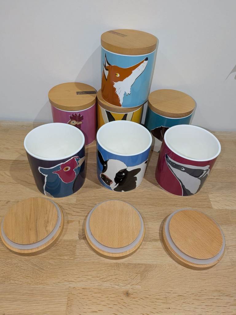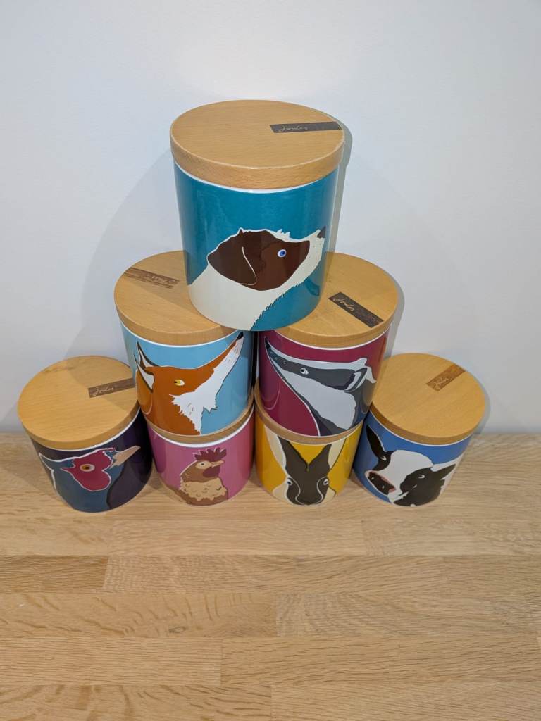 This is a set of seven very rare discontinued Joules storage cannisters with various animal designs as pictured.