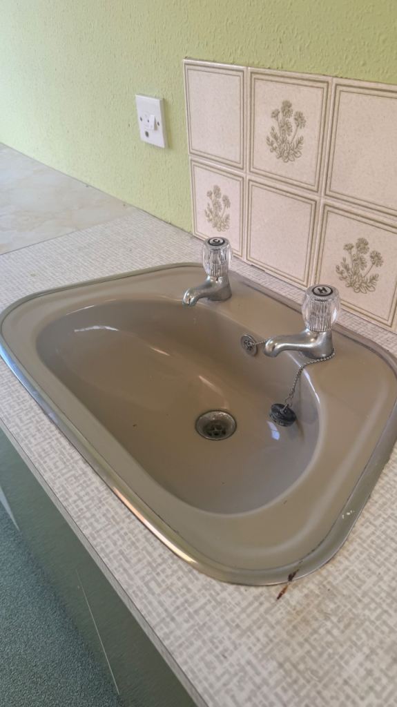 All units are 80cm tall and standard base-cabinet depth and sit at typical mid-century kitchen working height.