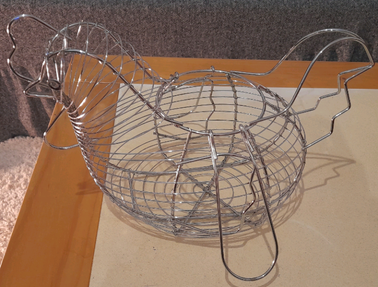Heavy-duty metal utensil drying rack with a stable, sturdy build. Features two separate vertical sections for plates, allowing you to store different sizes or types of plates neatly.
