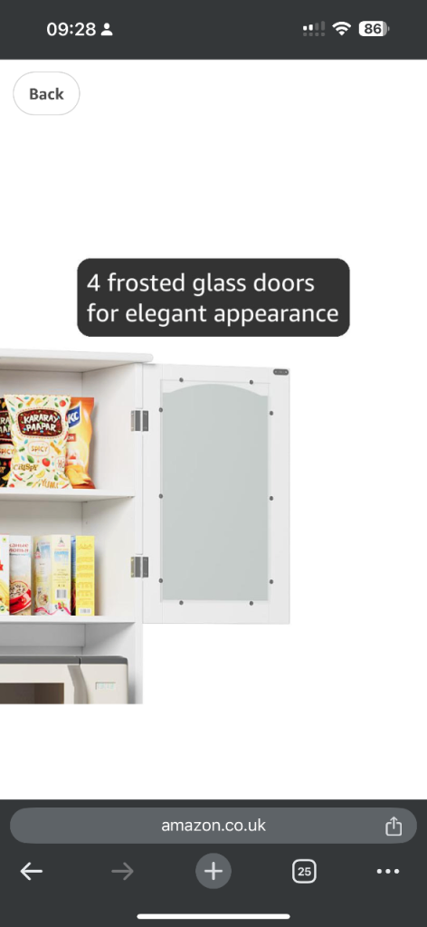 [Beautiful appearance]: The tall kitchen cupboard adopts a classic white finish, beautiful frosted glass doors and a clean appearance, which brings a refreshing feeling as a whole. It can be seamlessly matched with any home style and easily match your modern theme. The silver handles complement the white cabinet body, highlighting the elegant style of the white tall cabinet