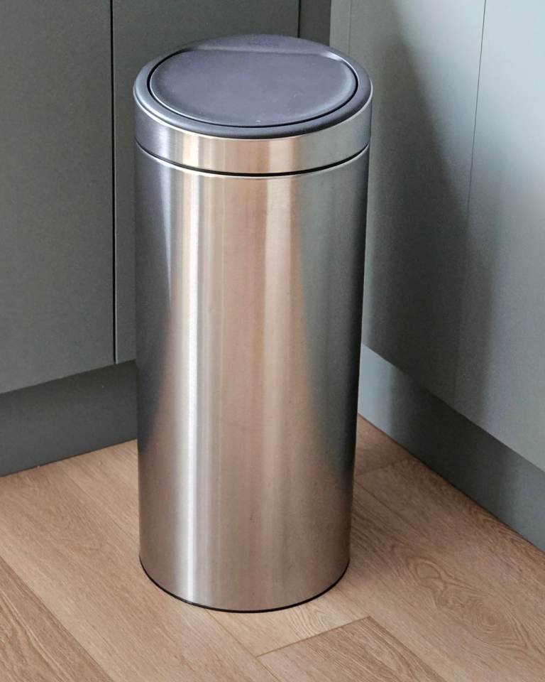 Brabantia 30 litre 'stainless steel bins'. Just touch the lid and it opens smoothly. It is easy to open, easy to change the bin bags and to clean. This touch bin also has a round design, is sturdy, and protects your floor thanks to the protection rim.