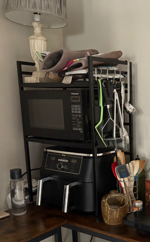 This saves SO much counter space - we put the air fryer underneath and microwave on the middle shelf for our temporary kitchen while we were renovating.