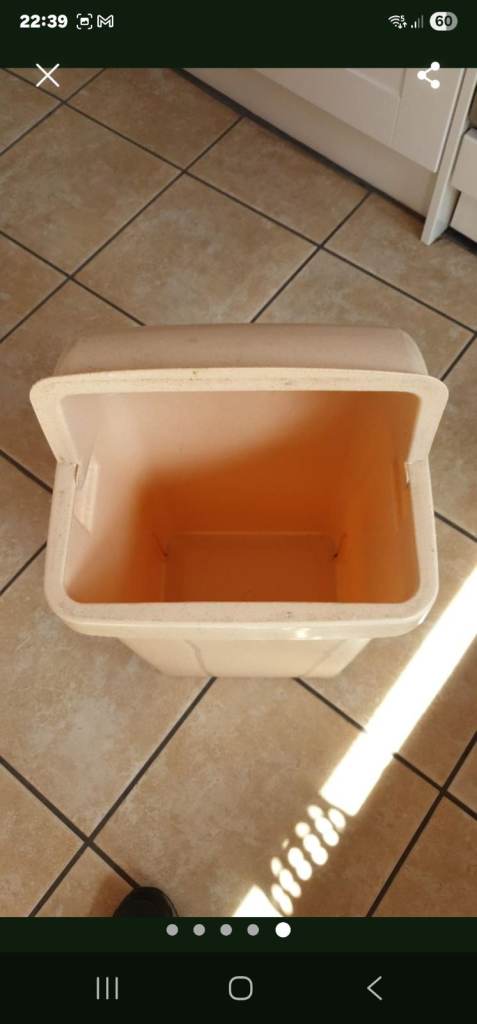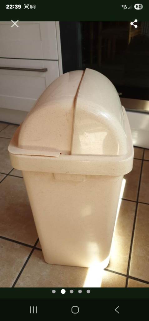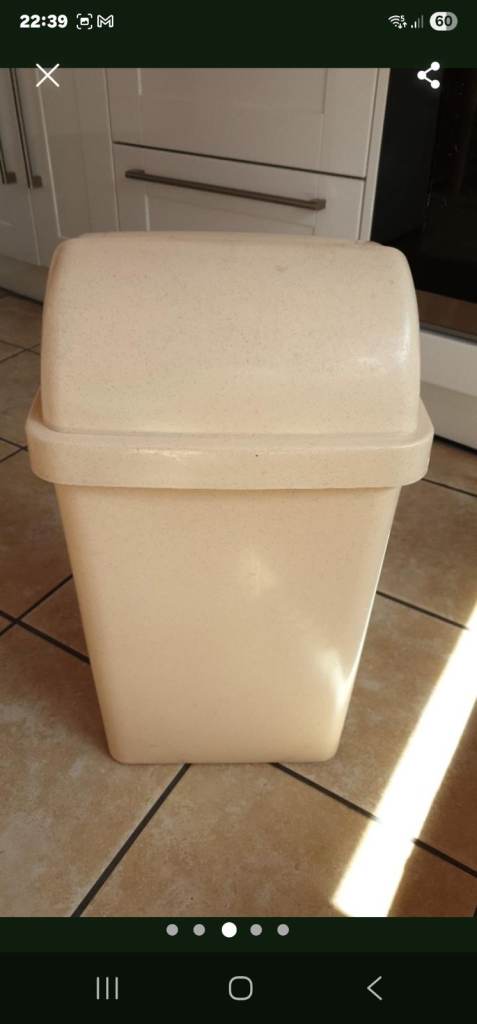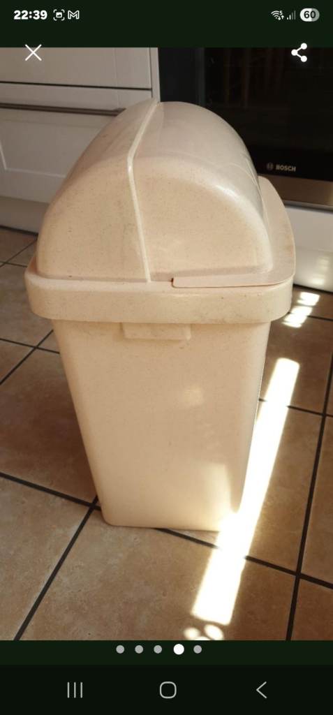 Kitchen Bin for sale. Good condition and strong plastic. Buyer collects from Tooting SW179RD. Height is 56cm including lid. Width is 31cm. Depth is 26cm. No time wasters or scammers please.