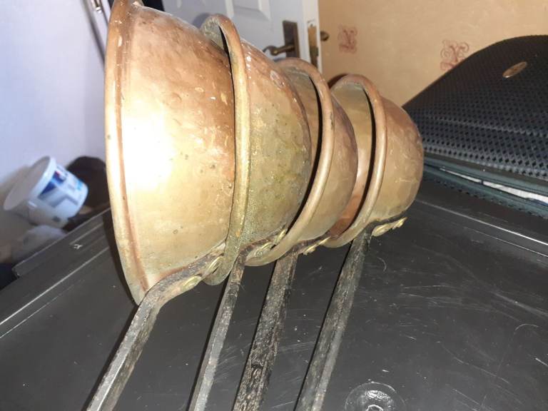 MY COMPANY CLEARS OUT BANKRUPT STOCK LIQUIDATION STOCK SMALL BUSINESSES SHOPS HOUSES GARAGES SCHOOLS ETC ETC.GOT THESE FROM A HOUSE CLEARANCE NEAR BUSHMILLS. COPPER LARGE PLANISHED VICTORIANA KITCHEN LADLE SET.