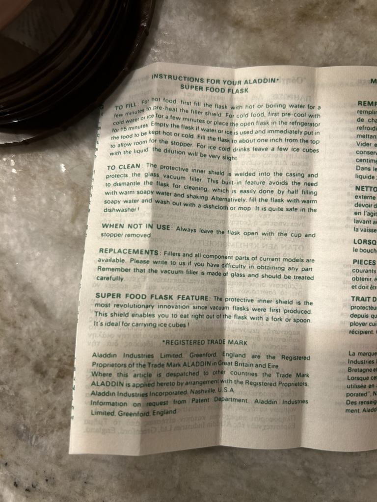 Vintage Aladdin Super Food Flask 1L yellow unused