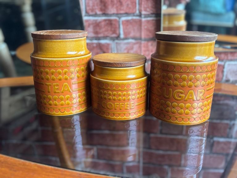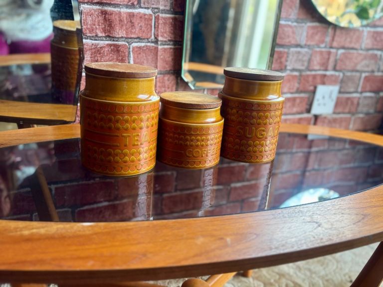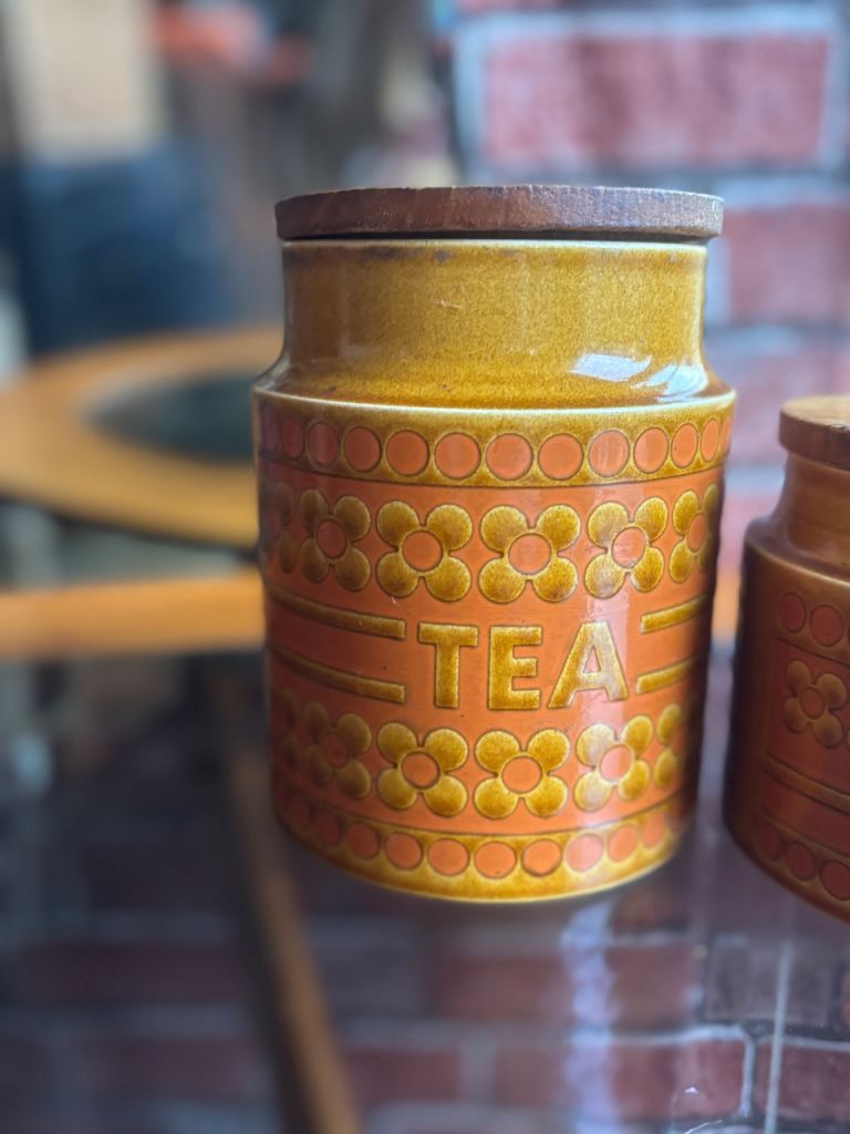 Vintage Mid Century(1977) Horsea Saffron Brown Pottery storage jars,Tea,coffee,Sugar